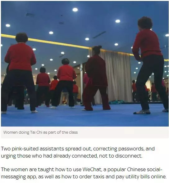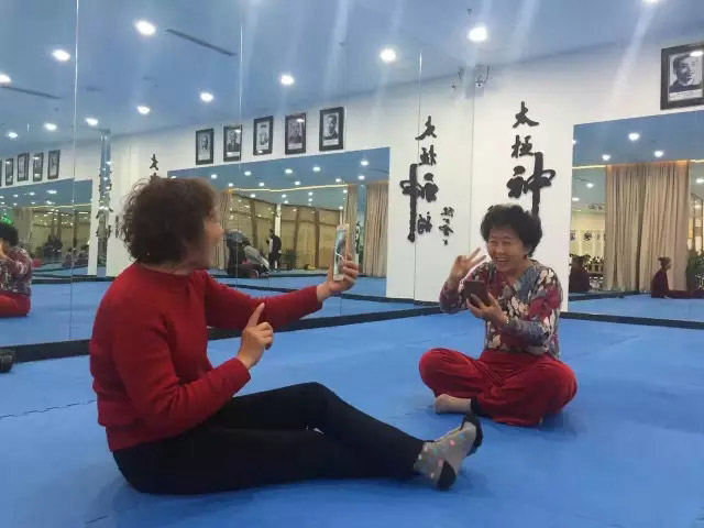 女士们来这里学习太极,太极是中国古老的武术之一,同时也学习智能手机并掌握社交媒体。
