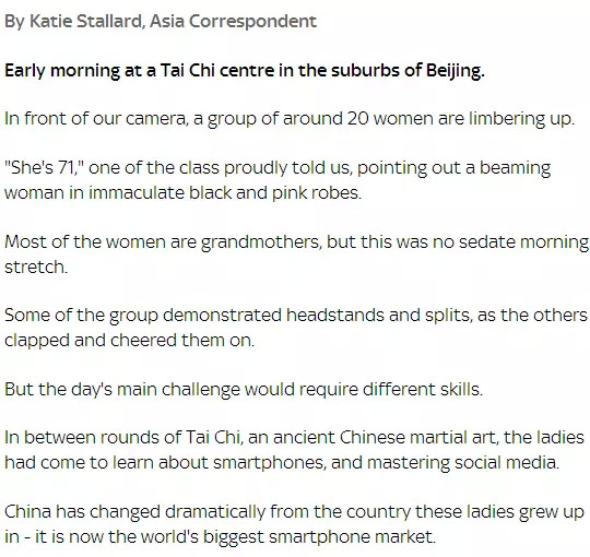 英国sky news报道:正雷太极书院萌学馆中中国老年人的健康生活